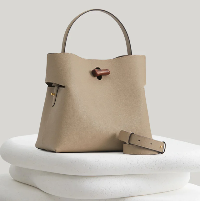 Sac en cuir de taille moyenne ( 25 x 14 x 28 cm) , avec fermeture en bois et ferronnerie dorée . Pochette intérieure et bandoulière détachable . Un sac à main indémodable, élégant et parfait pour toute saison!