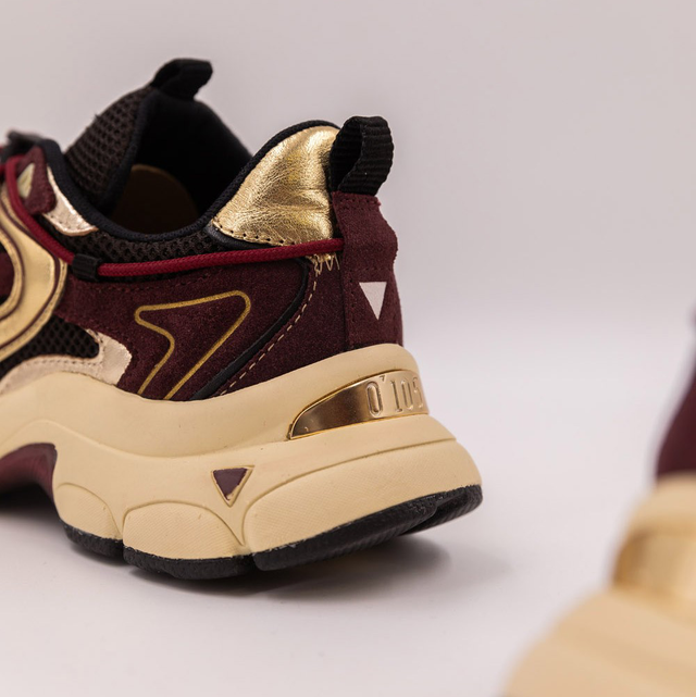 La Spider Gold Wine impose son style avec une palette riche et contrastée. Sa base noire est relevée par des touches de doré lumineux et de bordeaux intense, pour une allure à la fois chic et pleine de caractère. Son design dynamique est porté par une semelle légère et confortable, emblématique de 0-105. Une running audacieuse et élégante, à porter aussi bien avec une jupe longue noire qu’avec un jean, pour un look remarqué en toute occasion.