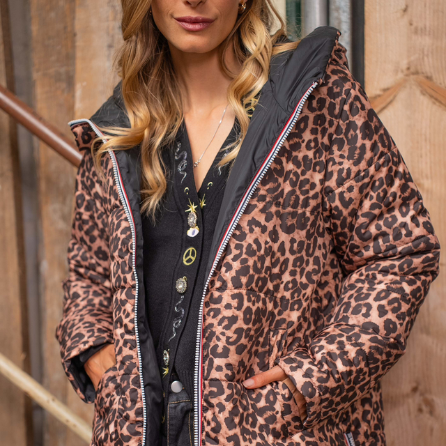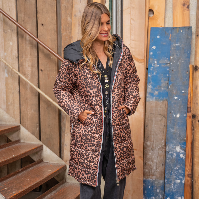 Veste épaisse réversible , un côté noir et un côté léopard, 55% coton 45% polyamide